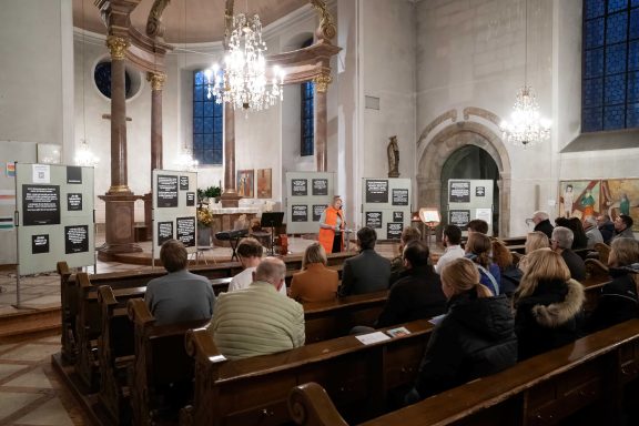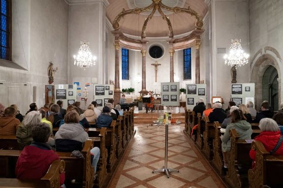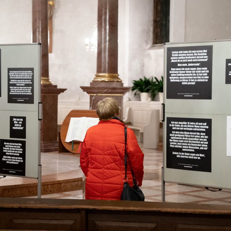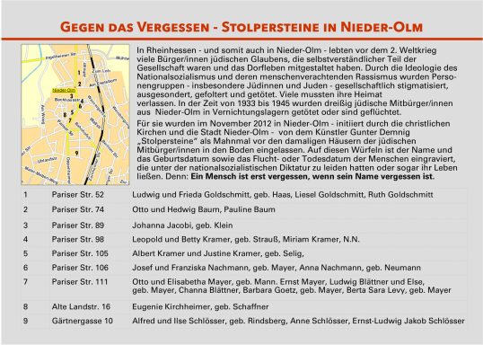 Die Initiative für das Projekt ging von der IGS aus, die als Mitglied im Schulnetzwerk „Schule ohne Rassismus“ schon seit Jahren aktiv dabei ist, das Miteinander innerhalb der Schulgemeinschaft auf den Säulen von Vielfalt und Toleranz aufzubauen – und damit dem Rassismus die Stirn zu bieten. Der jährliche schulinterne Aktionstag wird nun durch das Ausstellungsprojekt ergänzt. Das Zeichen gegen Rassismus soll so auch außerhalb der Schulwände Gehör finden. Um eine breite Öffentlichkeit auf das Projekt aufmerksam zu machen, konnte das Bündnis einige Geschäfte in der Stadtmitte als Mitstreiter gewinnen. Optik Gothe, Buchhandlung BINO, Schreinerei T2, Hippienez Boutique, Foto Seidl, TUI -Reisebüro und Eiscafe Piccin zeigten ebenfalls die Tafeln der Wanderausstellung. „Dadurch wollen wir auch Menschen erreichen, die die Ausstellung in der Kirche nicht sehen können“, sagt Willi Sturm. In der Kirche stehen zudem zeitweise Mitglieder des Bündnisses bereit, um sowohl über die Ausstellung selbst als auch über die Arbeit des Nieder-Olmer Bündnis für Demokratie, Vielfalt und Toleranz zu informieren.