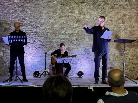 Im Nieder-Olmer Camarahaus lasen und spielten die beiden mitreißende Texte, zum Beispiel von Kurt Tucholsky und Erich Kästner. Menschenwürde und Menschenrechte, die zentralen Werte der Demokratie, standen dabei im Mittelpunkt. Eindrucksvolles Theater, das mit sparsamer Mimik und Gestik ganz auf die Kraft des Wortes setzte– und auf die stimmungsvollen musikalischen Akzente der Gitarristin Katrin Zurborg. Eingeladen dazu hatte das Nieder-Olmer Bündnis für Demokratie, Vielfalt und Toleranz, das sich parteiübergreifend seit bald zwei Jahren mit vielfältigen Veranstaltungen für den Fortbestand der Demokratie wie wir sie kennen einsetzt. Für die kommenden Monate stehen weitere spannende Veranstaltungen auf dem Programm.