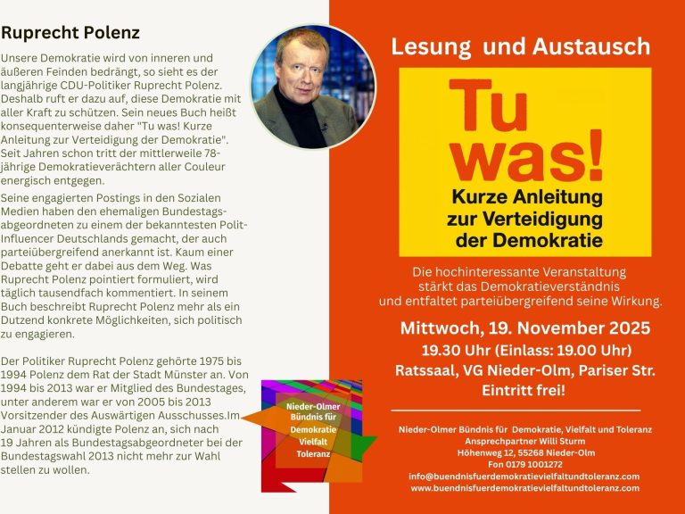 Ruprecht Polenz in Nieder-Olm: Demokratie muss man lernen, aber die Mühe lohnt!