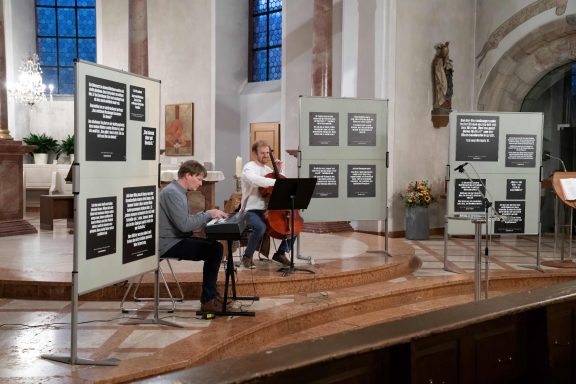 "Warum verteidigt der normale deutsche Bürger die Demokratie nicht?“ Angesichts der Gelassenheit, ja der Gleichgültigkeit, mit der Teile der Bevölkerung auf aktuelle demokratiefeindliche Tendenzen reagieren, sind dies berechtigte Fragen, finden Christoph Maasch und Sven Marko Schmidt. Das „freie taw-theater am werk“ aus Koblenz spannte im Programm „Der Menschheit Würde ist in eure Hand gegeben“ den Bogen von den 1920er- und 1930er-Jahren ins Heute und zu unserer Verantwortung. Und die ist groß, denn: „Es heißt immer Hitlers Machtergreifung. Da wurde nichts ergriffen. Der wurde gewählt.“
