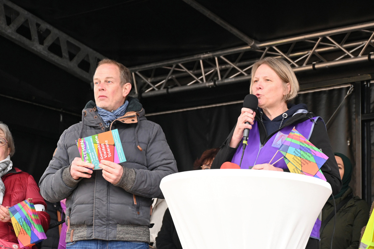 Über 800 Menschen sind der Einladung des Nieder-Olmer Bündnisses zur Kundgebung für Demokratie, Vielfalt und Toleranz gefolgt! Statements aus allen Bereichen - Vereinen, Kirchengemeinden, Gemeinnützigen Organisationen, Menschen mit Migrationshintergrund, ... - unterstrichen auf unterschiedliche Weise, wie wichtig es gerade im Moment ist, eine klare Position zu beziehen. Vollker Metzger moderierte die Veranstaltung, bei der auch musikalische Akzente gesetzt wurden, in hervorragender Weise.